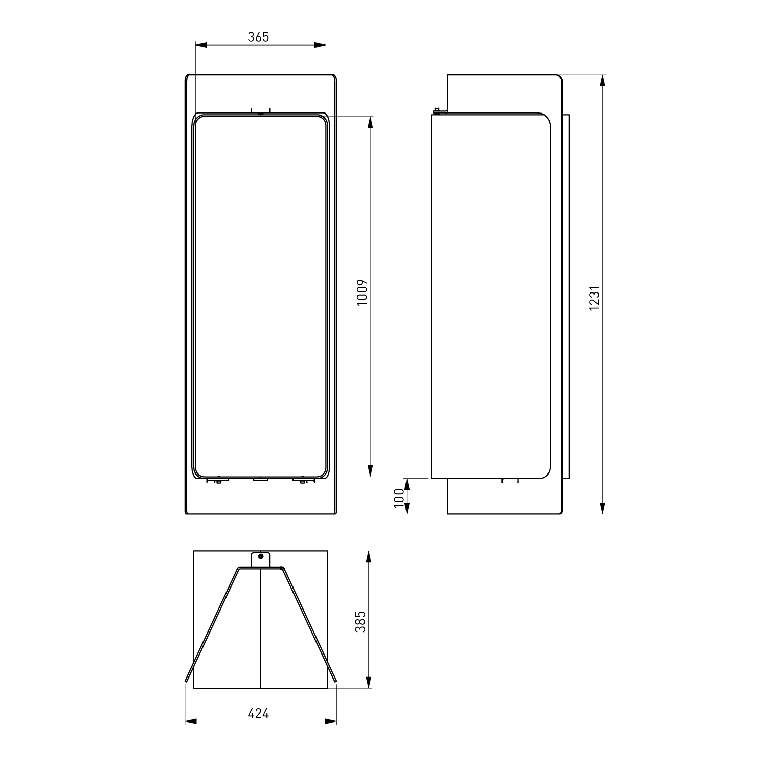 - Maße (H x B x T): 1231 x 424 x 385 mm