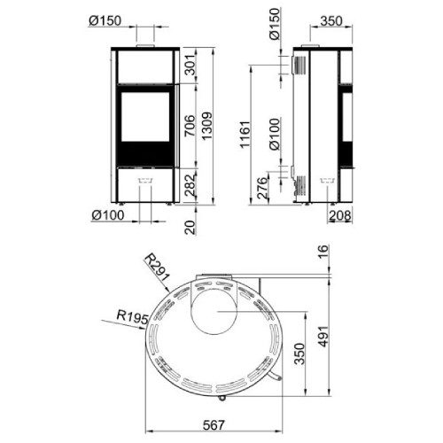 – Ein mit Stahlverkleidung oder Natursteinverkleidung seitlicher Speicher: mit Speichermasse ausgegossenes Modell