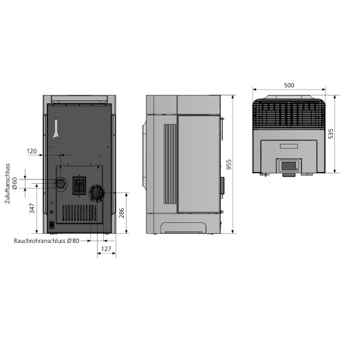 Höhe bis Rauchrohranschluss (hinten) (mm):