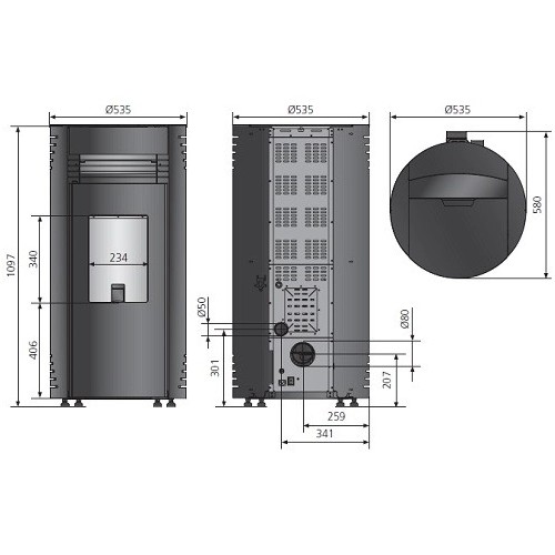 – Maße Grundgerät: 1097 x 535 x 580 mm (Höhe x Breite x Tiefe)