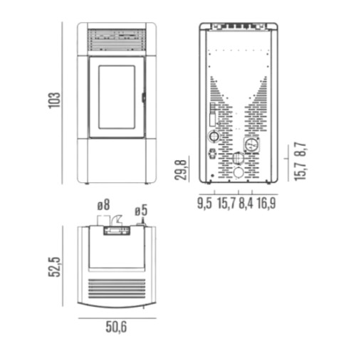 - Rauchrohranschluss hinten: Ø 80 mm